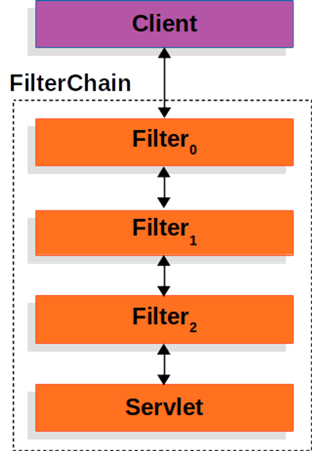 필터는 여러 개가 존재할 수 있기 때문에 필터끼리 서로 넘겨줄 수 있는데 이것을 Filter Chain이라고 한다.